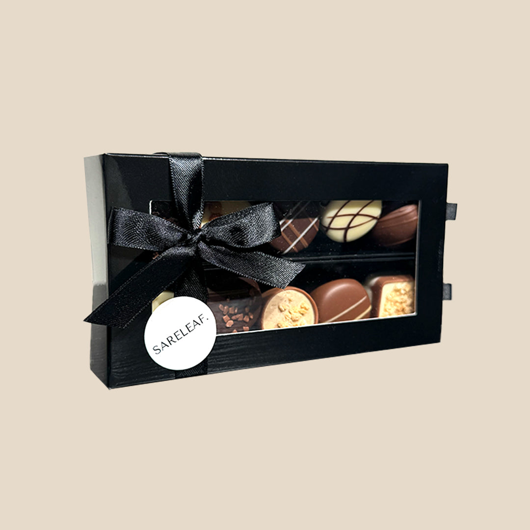 Een willekeurige mix van 10 ambachtelijke bonbons in geschenkverpakking. Ideaal om iemand te verwennen met Belgische chocolade!