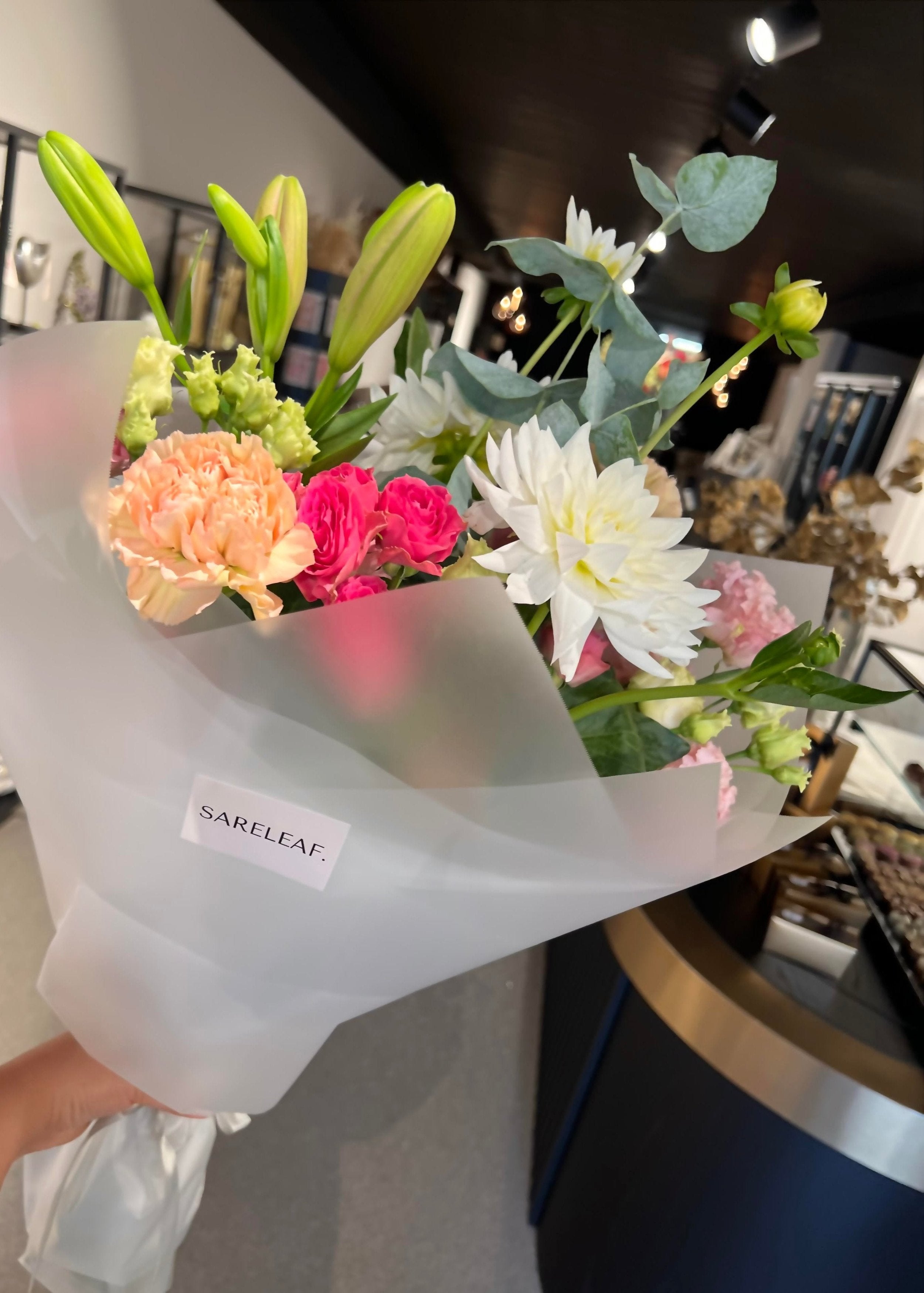 Stap binnen in een wereld waar bloemen bloeien, chocolade verleidt en lifestyle inspireert. Kies jouw favoriete bloemen per stuk - vers, droog of zijden - en laat het perfect schikken door onze Florist (donderdag, vrijdag, zaterdag). In afwezigheid van de Florist of voor de snelle klant: Maak een keuze uit de Daily Pick & Go boeketten. Geen boeket nodig? Ook dan ben je bij SARELEAF aan het juiste adres. De bloemen zijn namelijk ook los verkrijgbaar.